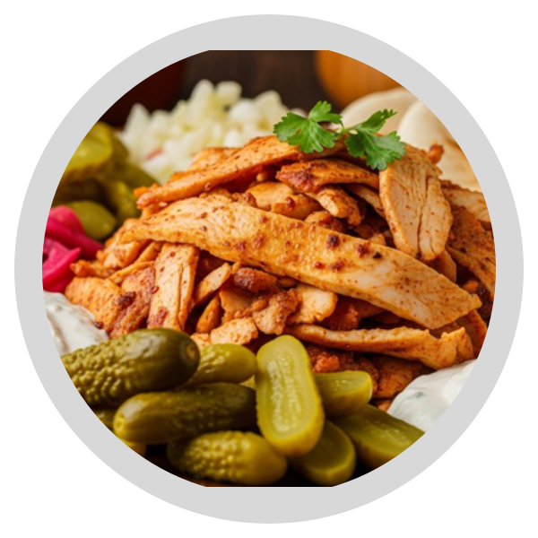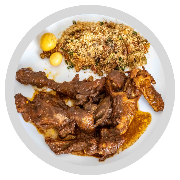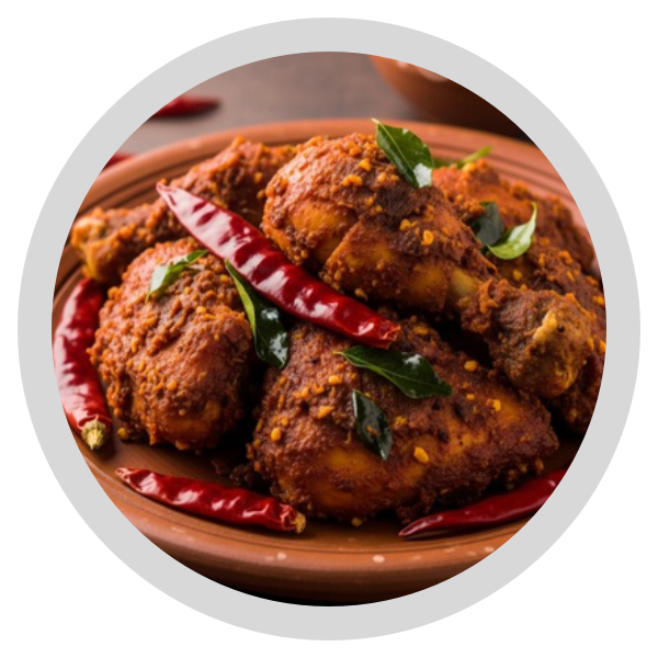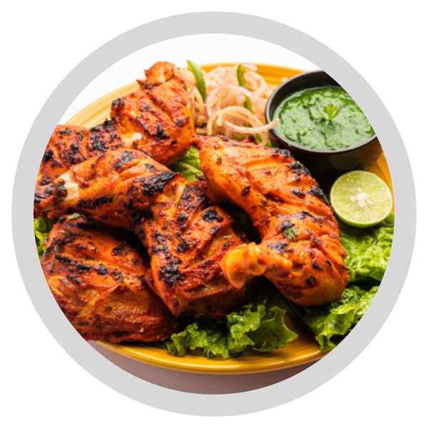 Bone-in chicken, marinated with lemon, ginger, garlic & spices.