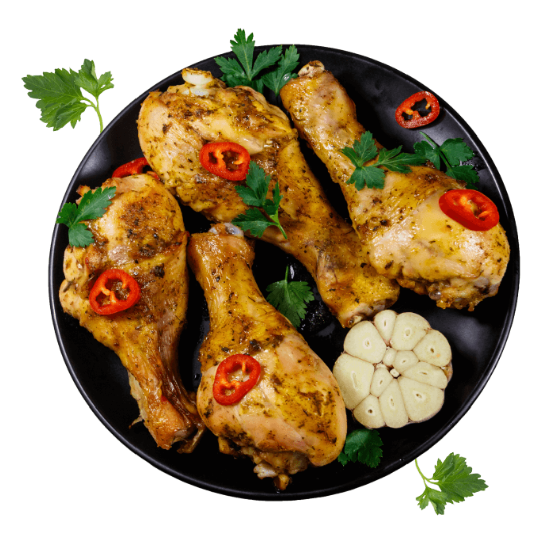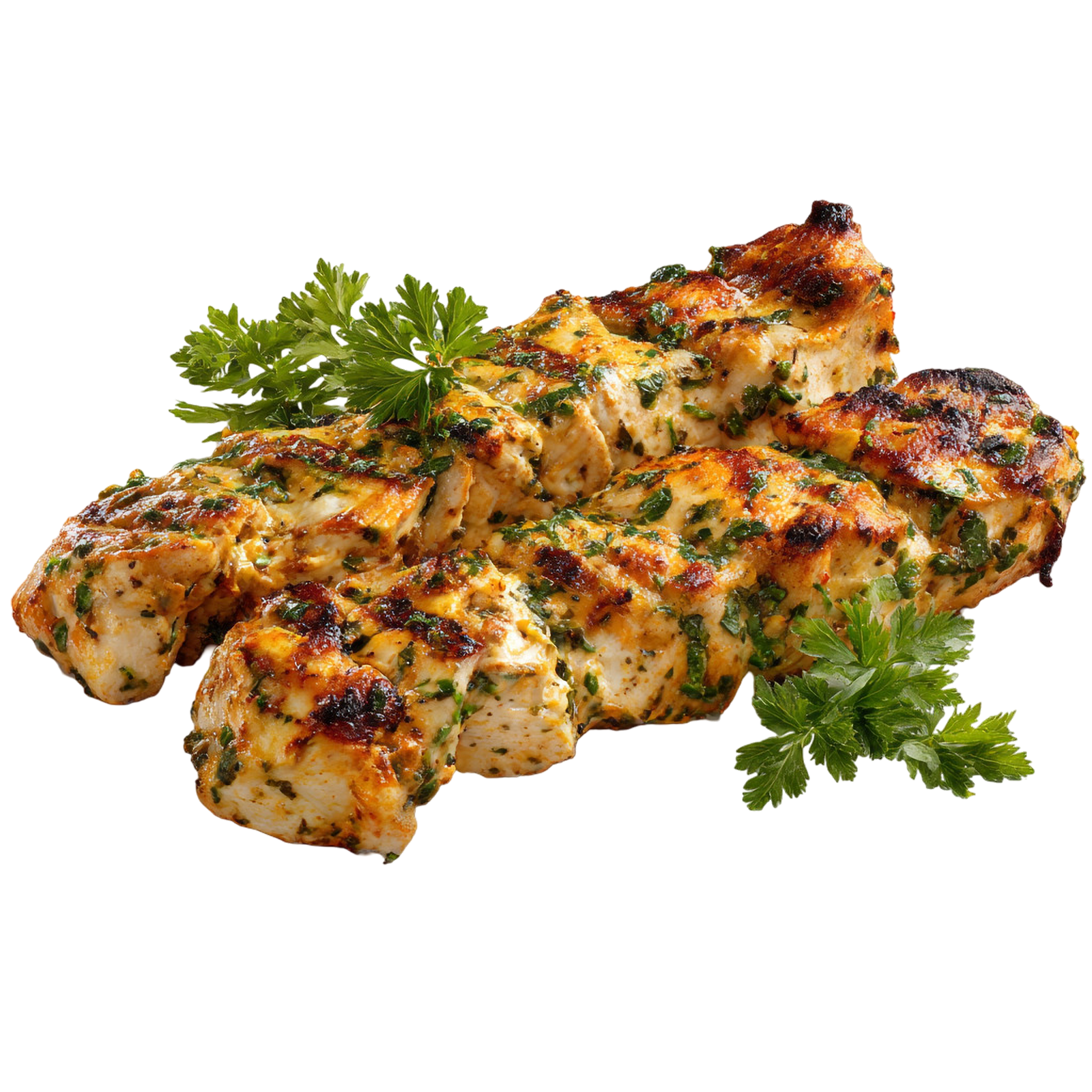 Bone-in chicken, marinated with lemon, ginger, garlic & spices.